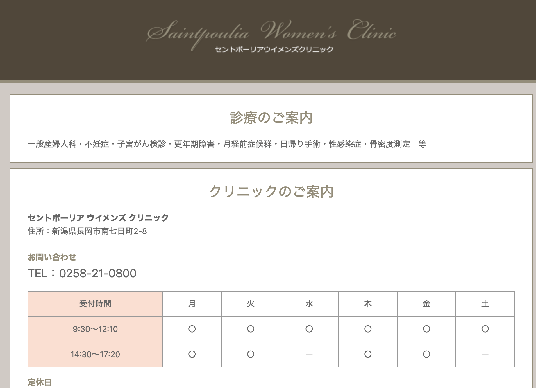 | クリニック名 | セントポーリアウィメンズクリニック |
