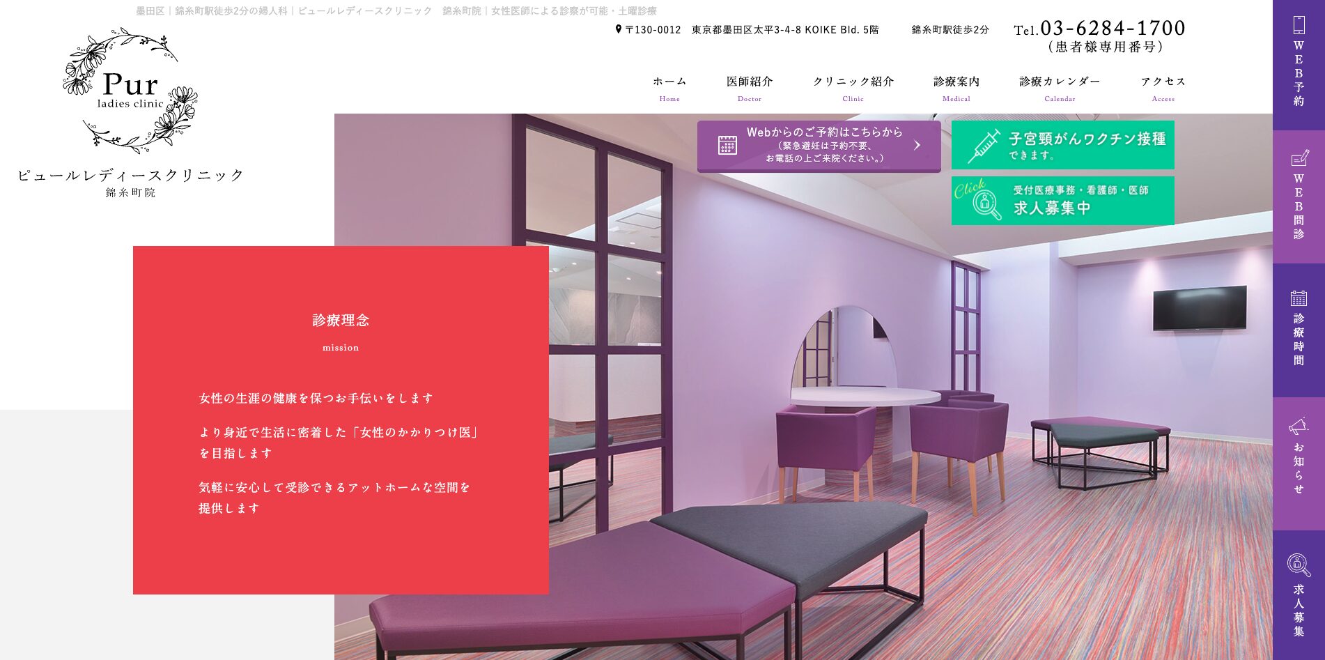 ピュールレディースクリニックは、婦人科専門院として、すべての年代の女性の健康を保つために婦人科関連のメニューが豊富であり、おひとりおひとりの女性のからだの悩みを解決するクリニックです。
