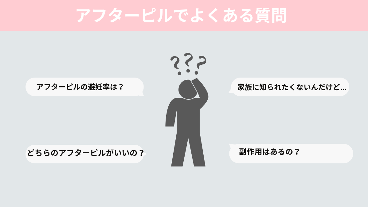 アフターピルについて、多くの方が抱える疑問や不安があります。