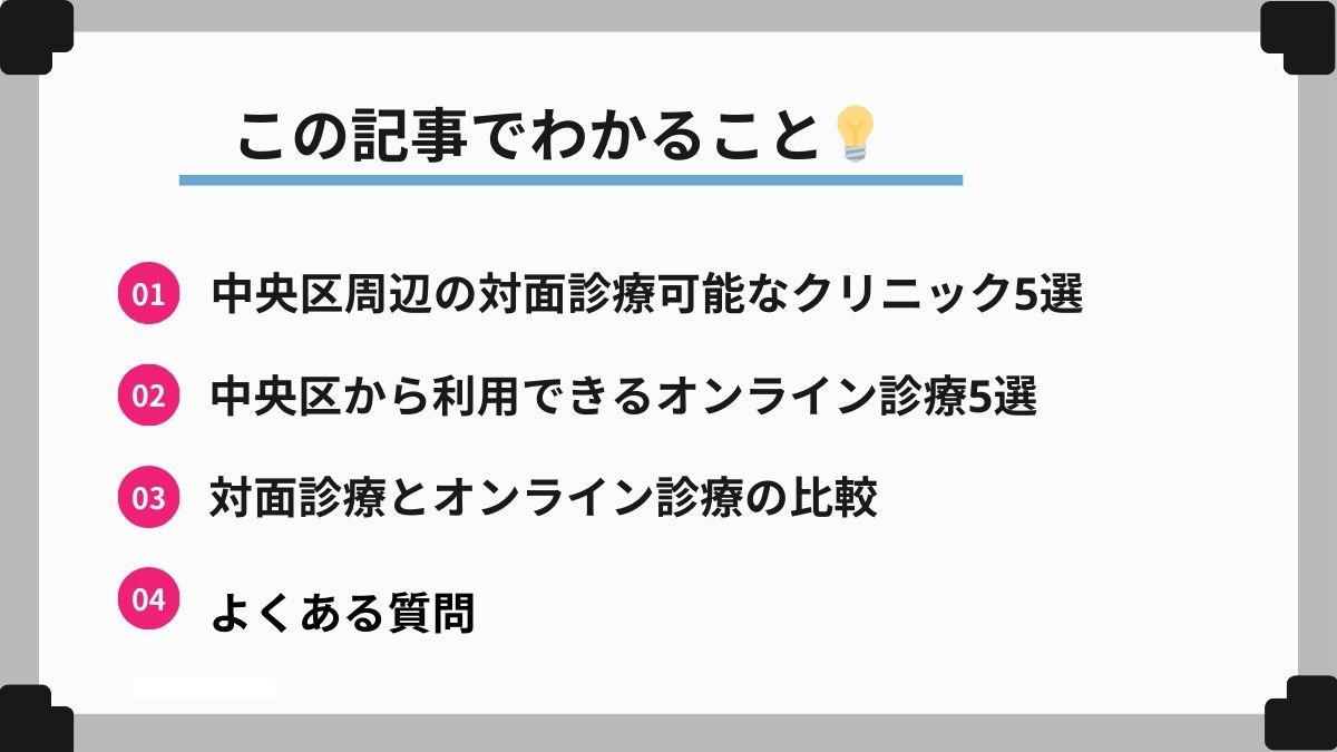 中央区の対面診療可能なおすすめクリニック・病院5選